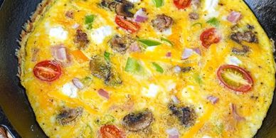 Omelettes Made to Order served with shredded Cheese, Sour Cream & Salsa and (4) Fillings: Ham • Bay Shrimp • Italian Sausage • Red and Green Peppers • Sautéed Onions • Mushrooms • Bacon • Fresh Spinach • Sundried Tomatoes